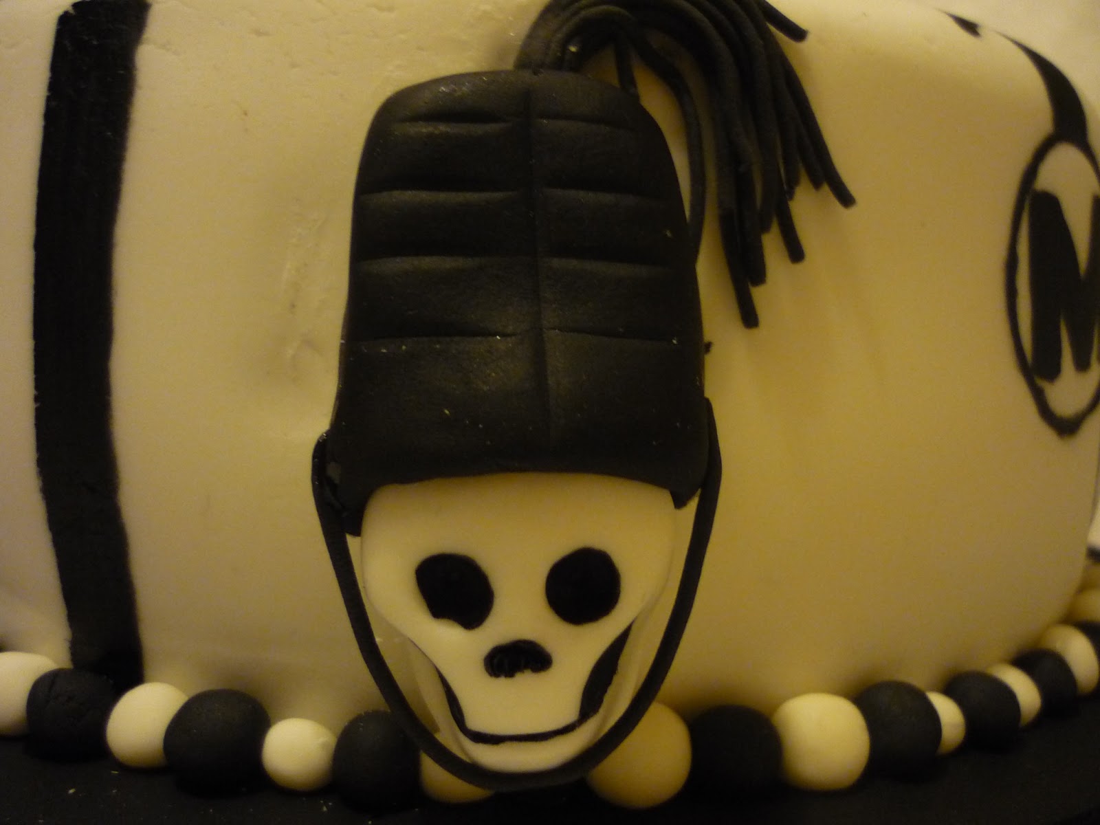 I had been informed that she liked their album 'The Black Parade' so decided to create some of their marching skeletons to place around the side of the cake. These were difficult to attach to the cake as they were heavy and also fragile where the icing acted as a strap for the hat.